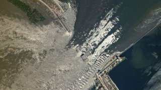 เสียหายหนัก! ภาพถ่ายดาวเทียมแสดงขอบเขตของการทำลายเขื่อน "Kakhovka" ของยูเครนเมื่อวาน!!