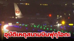 เกิดเหตุเครื่องบินญี่ปุ่นชนไฟข้างทางขับที่สนามบินฟุกุโอกะ