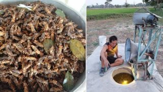 แปลกดี ไม่ต้องเดินหาให้เมื่อยน่อง หนุ่มใช้เครื่องเสียงล่อแมลงกระชอน ได้เยอะมาก