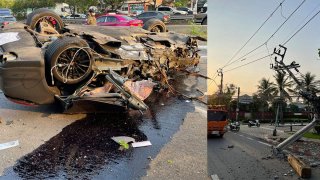เผยคลิปนาที หนุ่มทายาทบ้านจัดสรร ซิ่งรถหรูชนเสาไฟหัก 3 ท่อน รถเหลือแต่ซาก แต่คนขับเจ็บนิดเดียว