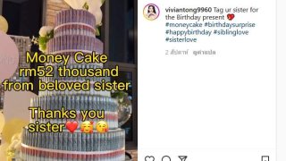 เรียกได้ว่าเป็นไวรัลสุดร้อนแรง ทั้งในมาเลเซียและในโลกออนไลน์ หลังสาวคนหนึ่งที่ชื่อว่า "วิเวียน ถง" ได้โพสต์คลิปวิดีโอ เหตุการณ์เซอร์ไพรส์วันเกิดของเธอ ซึ่งเป็นวันเกิดครบอายุ 26 ปี โดยน้องสาวของเธอ "โคโค่ ถง" ได้สั่งเค้กที่ทำมากจาก เงินสดสูง 9 ชั้น ที่มีมูลค่าเงินรวมแล้ว 52,000 ริงกิต มาเซอร์ไพรส์... "โคโค่ ถง" กล่าวว่า "เลข 520 พ้องเสียงกับคำว่า "ฉันรักเธอ" ในภาษาจีน ซึ่งมันเป็นคำสุดฮิต ของวัยรุ่.. ดูเพิ่ม