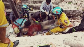 เจดีย์เก่าทรุดตัวถล่ม คนงานเจ็บอื้อ!! ติดค้างใต้ซาก...