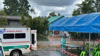 ชาวเน็ตชื่นชม เจ้าหน้าที่รับผู้ป่วยโควิด 19 กลางสายฝนที่ตกลงมาอย่างหนัก