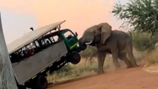 เกิดเหตุช้างแอฟริกาใต้ โจมตีรถบรรทุกนักท่องเที่ยว
