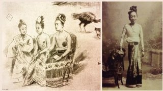 เจ้านางขันคำแห่งหอเจียงจันทร์ ขนิษฐาของเจ้าฟ้ารัตนะก้อนแก้วอินแถลงเจ้าฟ้าหอคำนครเชียงตุง...ผ้าซิ่นไหมคำลายบัวคว่ำบัวหงายที่เจ้านางทรงสวมปราณีตงดงามและล้ำค่า เจ้านางโพกหัวแบบแม่หญิงเชียงตุงพร้อมด้วยเครื่องประดับ นั่งอย่างสง่างามเคียงข้างเลดี้ชาวอังกฤษที่แต่งกายในยุควิคตอเรีย สวมหมวกสวยงาม(ภริยาของท่านเซอร์ จรอจ์ สก๊อต)สุภาพสตรีทั้งสองท่านนั่งท่ามกลางผู้คนชนชั้นนำที่รวมหมู่ถ่ายภาพพร้อมกับเจ้าฟ้าเมื.. ดูเพิ่ม