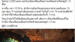 จากกรณีที่ เด็กๆเเละโค้ชทีมฟุตบอล อะคาเดมีหมูป่า จำนวน13 ราย หายตัวเข้าไปในถ้ำหลวงนางนอน อ.เเม่สาย จ. เชียงราย ตั้งเเต่กลางดึก ของวันที่ 23 มิถุนายน 2561 ศูนย์วิทยุ 191 สภ.แม่สาย ได้รับแจ้งว่ามีเด็กหายเข้าไปใน ถ้ำภายใน วนอุทยานถ้ำหลวง-ขุนน้ำนางนอน ต.โป่งผา อ.แม่สาย จ.เชียงราย จึงได้รายงานให้ผู้บังคับบัญชาทราบตามลำดับชั้น และได้แจ้งให้เจ้าหน้าที่ตำรวจสายตรวจ ต.โป่งผาฯ เข้าไปตรวจสอบ ยังที่เกิดเหต.. ดูเพิ่ม
