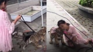 "ใจดีสู้เสือ" เด็กหญิงวัย 9 ขวบ จูงลูกเสือเดินเล่นทุกเช้า (คลิป)