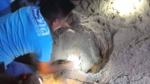 ฐานทัพเรือพังงาพบการวางไข่ของเต่ามะเฟือง บริเวณชายหาดเขาหลัก (มีคลิป)