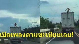หนุ่มเต้นโชว์บนหลังคารถ นึกว่าพี่ "ตูน บอดี้สแลม" มาเอง เปิดเพลงตามซะเนียนเลย คลิป...