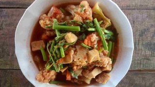 แกงส้มกระหล่ำดอกและผักกะเฉดใส้เต้าหู้(เจ)