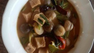 ต้มยำข่าเห็ดฟางใส่เต้าหู้เจ