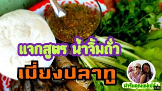 วัตถุดิบ ปลาทู แตงกวา ผักกาดแก้ว ผักชี เส้นหมี่ลวก ขั้นตอนการทำน้ำจิ้ม กระเทียม 4-5 กลีบ พริก 10 เม็ด หรือเผ็ดตามชอบ ตำให้ละเอียด ปรุงรสด้วย น้ำตาล น้ำปลา มะมาว ง่ายๆแต่อร่อยลองทำดูค่ะ ดูเพิ่ม