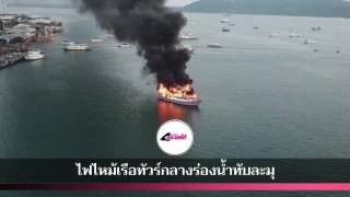 ระทึก!เพลิงไหม้โหมกระหน่ำเรือทัวร์ กลางร่องน้ำทับละมุ