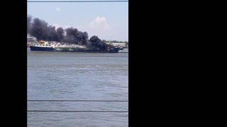 ด่วน! เรือบรรทุกสินค้า ‘ไฟไหม้’ กลางแม่น้ำเจ้าพระยา