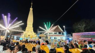 คอหวยแห่ส่องเลขน้ำมนต์! งานห่มผ้าพระธาตุวัดจระเข้หิน เสริมดวงรับงวด 1 ก.พ. 69