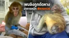 พบลิงถูกตัดหาง อาการหนัก พิการถาวร