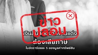 ข่าวปลอม ‼️ เงินสินสอดจากงานแต่ง ต้องเสียภาษีในอัตราร้อยละ 5 ของมูลค่าทรัพย์สิน