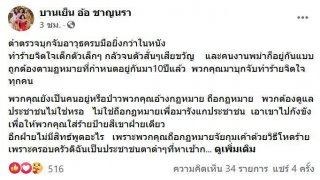 ล่าสุดเจาตัวก็ได้ออกมาเคลื่อนไหวอีกครั้งโดยโพสต์ข้อความระบุว่า ตำรวจบุกจับอาวุธครบมือยิ่งกว่าในหนัง ทำร้ายจิตใจเด็กตัวเล็กๆ กลัวจนตัวสั่นๆเสียขวัญและคนงานพม่าก็อยู่กันแบบถูกต้องตามฏหมายที่กำหนดอยู่กันมา10ปีแล้ว พวกคุณมาบุกจับทำร้ายจิตใจทุกคน พวกคุณยังเป็นคนอยู่หรือป่าวพวกคุณอ้างกฏหมาย ถือกฏหมาย พวกต้องดูแลประชาชนไม่ใช่หรอ ไม่ใช่ถือกฏหมายเพื่อมารังแกประชาชน เอาเขาไปกังขังเพื่อให้พวกคุณใส่ร้ายป้ายส.. ดูเพิ่ม