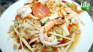 ตำยอดมะพร้าวอ่อน ใส่กุ้ง ข้าวโพด เมนูลดน้ำหนักสำหรับคนรักสุขภาพ
