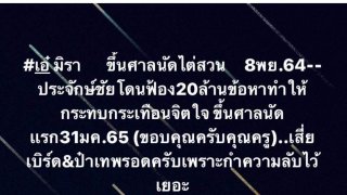 ไม่จบไม่สิ้นสำหรับมหากาพย์ดราม่าของ เอ๋ มิรา ชลวิรัลวานิศร์ และอดีตสามี ครูไพบูลย์ แสงเดือนที่ก่อนหน้านี้ เอ๋ มิรา ร่ำไห้กลางไลฟ์สดเล่าถึงเหตุการณ์ขึ้นศาลบอกว่าตนเองนั้นถูกศาลตัดสินจำคุก ยอมรับว่าไม่ได้เตรียมใจ และคนที่ทำให้มานั่งอยู่ตรงนี้ คือพ่อของลูกอย่างอดีตสามี ครูไพบูลย์ แสงเดือน ฟ้องหลังออกรายการโหนกระแส เรียกค่าเสียหาย 1 ล้านบาท ล่าสุด ประจักษ์ชัย ไหทองคำ ได้โพสต์เฟซบุ๊กพร้อมแท็ก เอ๋ มิรา.. ดูเพิ่ม