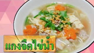 เครื่องปรุงและวัตถุดิบ 1.ไข่ไก่ 2.เนื้อไก่สับ 3.ผักกาดขาว 4.กระเทียมสับ 5.แครอท 6.ต้นหอมหั่นท่อน 7.ผักชี 8.น้ำมัน 9.ซอสปรุงรส 10.น้ำปลา 11 น้ำตาล 12.ผงปรุงรส 13.น้ำเปล่า 14.พริกไทยป่น วิธีทำ 1.ปรุงรสเนื้อไก่สับ ใส่ซอสปรุงรสและน้ำตาลเล็กน้อย พริกไทยป่นคลุกให้เข้ากันพักไว้ 2.เจียวกระเทียมสับให้เหลืองหอม พักไว้โรยหน้าแกงจืด 3.ใส่น้ำมันเล็กน้อยใส่กระเทียมผัดให้หอม ตีไข่ใส่กระทะเพื่อทำไข่เจียว สับไข่เป.. ดูเพิ่ม