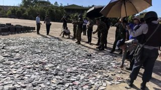 ตำรวจเขมรยึดอุปกรณ์ที่เกี่ยวข้อง กับการฉ้อโกงจำนวนมาก และ ซิมการ์ดมากกว่า 18,000 ใบ