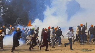 สื่อนอกรายงานว่า "ตำรวจอินเดีย ได้เปิดฉากยิงแก๊สน้ำตาสลายการชุมนุมประท้วง ของกลุ่มเกษตรกรชาวอินเดีย ที่กลับมาเดินขบวนสู่กรุงนิวเดลีอีกครั้ง พร้อมด้วยเครนและรถขุด หลังจากการเจรจากับรัฐบาลเกี่ยวกับ การรับประกันราคาพืชผลล้มเหลว..." เกษตรกรหลายพันคน ซึ่งบางส่วนสวมหน้ากากอนามัย ได้วิ่งหลบหนีเข้าไปในทุ่งนาล้อมรอบจุดนัดพบของพวกเขา บนทางหลวงที่อยู่ห่างจากนิวเดลีไปทางเหนือ ประมาณ 200 กิโลเมตร เพื่อหนีแก๊ส.. ดูเพิ่ม