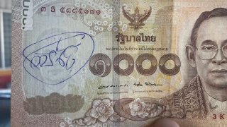 เนื่องจากช่วงนี้มีข่าวแบงค์ปลอมระบาด ก็เลยอยากจะมาเผยวิธีสังเกตแบงค์ปลอม เพื่อไม่ให้ตกเป็นเหยื่อของมิจฉาชีพ โดยข้อมูลจาก สำนักงานตำรวจแห่งชาติ (ตร.) เผยวิธีสังเกตในเบื้องต้นธนบัตรใบละ 1,000 บาท ว่าปลอมหรือไม่ ให้ดูที่ "แถบสีในเนื้อกระดาษ" ดังนี้ พลาสติกสีทองที่ฝังไว้ในเนื้อกระดาษตามแนวตั้งของธนบัตร จึงเรียกว่า "แถบสีทอง" ในมุมปกติจะมองเห็นเป็นเส้นประแต่เมื่อส่องกับแสงจะเห็นเป็นเส้นตรงและมีข้อความ .. ดูเพิ่ม