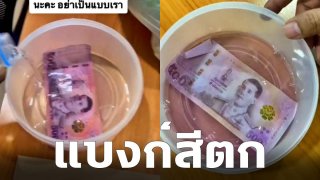 สาวปวดใจ!! เจอแบงก์ 500 บาท เทน้ำใส่ สีตกหมด เตือนขอให้ดูดีๆก่อนรับแบงก์