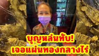 บุญหล่นทับ! เจอแผ่นทองกลางไร่ เห็นชัดลายพระ คาดเป็นของเก่าแก่
