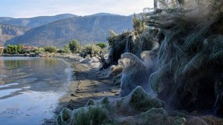 นึกว่าฉากในหนังสยองขวัญ แมงมุมยักษ์ Tetragnatha ชักใยคลุมต้นไม้รอบๆทะเลสาบในกรีซ