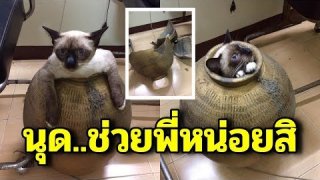 เหมียวซนหนัก พุงติดไหออกไม่ได้ งานนี้ปวดหัวตึบ ทาสแมวขำกลิ้ง ทาสแมวถึงกลับขำกลิ้ง เมื่อเจ้าเมียวตัวหนึ่ง เผลอเล่นซนไปหน่อย เข้าไปในไห แล้วออกไม่ได้ โผล่มาแต่หัว จากการคาดการ อาจเป็นเพราะ ติดพุง เนื่องจากตัวของมันค่อนข้างอ้วนเกินไป เจ้าของไม่รู้จะทำยังไง ลงทุนทุบไห เพื่อเหมียวอ้วนตัวนี้ออกมา งานนี้เห็นทีเข็ดไปอีกนาน ดูเพิ่ม
