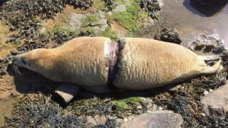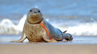ชมภาพแสนเศร้าของแมวน้ำตัวหนึ่งที่โผล่ขึ้นมาบนชายฝั่ง พร้อมตาข่ายจับปลาที่รัดอยู่รอบคอของมัน ดูน่าอึดอัดยิ่งนัก ภาพดังกล่าวถูกบันทึกไว้โดยนักถ่ายภาพสัตว์ป่า Colin Edwards บริเวณชายฝั่ง Norfolk ในประเทศอังกฤษ เมื่อช่วงต้นเดือนที่ผ่านมา ในแต่ละปี มีแมวน้ำกว่า 10,000 ตัว ที่ต้องตายจากการติดอวนติดแหที่ถูกทิ้งลงในทะเล และยังไม่นับสิ่งมีชีวิตอื่นๆ อีกที่ต้องตายจากขยะพลาสติกที่มนุษย์ทิ้งลงในทะเล ปีละกว่า .. ดูเพิ่ม