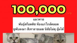 ตามหาแมวหาย ใครเจอมีเงินรางวัลให้ 100,000 บาท