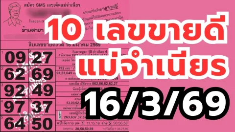 สิบเลขขายดีแม่จำเนียร งวด 16/3/69