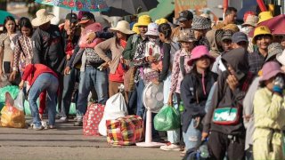 เขมรยัน!! "ไม่มีแรงงานเขมร แห่เดินทางออกจากไทยนะ"