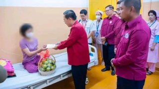 โดยเช้าวันที่ 18 พฤศจิกายน 2025 ผู้ว่าราชการจังหวัดพระตะบอง "ซก ลู" ได้เข้าเยี่ยมและมอบสิ่งของบรรเทาทุกข์ พร้อมเงินจำนวนหนึ่ง ให้แก่คนงานหญิงชาวกัมพูชาคนดังกล่าว ซึ่งกำลังรับการรักษาตัวอยู่ที่โรงพยาบาลประจำจังหวัด พร้อมกล่าวประณามอย่างรุนแรงว่า "ผมต่อการกระทำอันไร้มนุษยธรรมและโหดร้าย ของทหารไทยในชุดดำ ซึ่งเป็นการละเมิดสิทธิมนุษยชน และ ละเมิดสิทธิสตรีอย่างร้ายแรง" "ซก ลู" ได้ให้กำลังใจเหยื่อและครอ.. ดูเพิ่ม