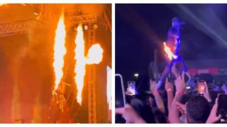 แร็ปเปอร์ชื่อดัง ถูกไฟเอฟเฟคต์พ่นใส่ กางเกงถูกไฟไหม้กลางเวที