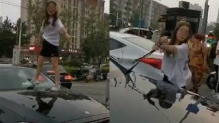 เมียปรี๊ด จับได้ผัวนัวชู้บนรถ ถอดชุดโดดขึ้นหลังคารถ