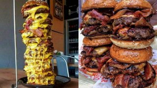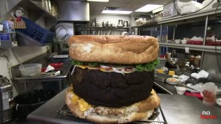 แฮมเบอร์เกอร์ที่ใหญ่ที่สุดในโลก เราไม่รู้ว่าเมนูนี้มันจะมีอยู่ในร้านอาหารจริงๆหรือเปล่า แต่นี้คือเบอร์เกอร์ที่ใหญ่ที่สุดในโลก โดยมีน้ำหนักของวัตถุดิบที่รวมกันถึง1,793ปอนด์ และพวกเขาก็ได้ใช้เวลาสร้างมันถึง16ชั่วโมงกันเลยทีเดียว และมันยังได้ลงบันทึกในกินเนสบุ๊คว่ามันคือแฮมเบอร์เกอร์ที่มีขนาดใหญ่ที่สุดในโลกอยู่ในตอนนี้ ดูเพิ่ม