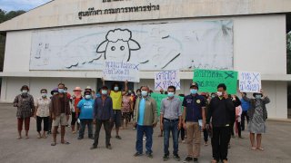 ชาวบ้านรวมตัวถือป้ายคัดค้านนำผู้ป่วยโควิดจากจ.สมุทรสาคร มาไว้ที่ค่ายทหารราชบุรี..โดยขอเข้าไปตรวจสอบดูในสนามมวย ค่ายบุรฉัตรอยู่ในความดูแลกรมการทหารช่าง... อยู่ระหว่างการทำความสะอาดพื้นที่พอดี ชาวบ้านสอบถามกลับไม่ได้รับคำตอบ..แถมขนกำลังขึ้นรถกลับทันที.. ดูเพิ่ม