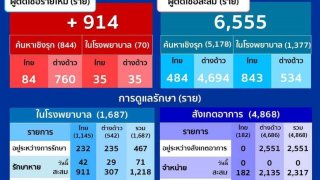 นพ.ทวีศิลป์ วิษณุโยธิน โฆษก ศบค. แถลงสถานการณ์โควิด19 วันนี้ (4 ม.ค.64) ไทยพบผู้ติดเชื้อ 745 ราย เสียชีวิตเพิ่ม 1 ราย ขณะนี้พบมีผู้ติดเชื้อในประเทศแล้วกว่า 54 จังหวัด เป็นผู้ติดเชื้อในประเทศ 152 ราย - มีประวัติไปสถานที่เสี่ยง 60 ราย - อยู่ระหว่างสอบสวนโรค 92 ราย ติดเชื้อในแรงงานต่างด้าว (คัดกรองเชิงรุก) 577 ราย จากสถานกักตัวที่รัฐจัดให้ 16 ราย เสียชีวิตเพิ่มขึ้น 1 ราย (เสียชีวิตสะสม 65 ราย) ดูเพิ่ม