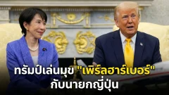 ประธานาธิบดี "โดนัลด์ ทรัมป์" ผู้นำของอเมริกา ได้เล่นมุขพาดพิงถึงการโจมตี "ท่าเรือและอ่าวเพิร์ลฮาร์เบอร์" ของญี่ปุ่นในเดือนธันวาคม ปี 1941 ระหว่างการประชุมทวิภาคี ที่ทำเนียบขาวกับนายกรัฐมนตรีญี่ปุ่น "ซานาเอะ ทากาอิจิ" ผู้นำของญี่ปุ่น เมื่อวันพฤหัสบดีที่ผ่านมา [ตามเวลาท้องถิ่น] เมื่อผู้สื่อข่าวถามว่า "ทำไมอเมริกา จึงไม่ได้แจ้งญี่ปุ่นหรือพันธมิตรอื่นล่วงหน้า ก่อนการโจมตีอิหร่าน?" ซึ่ง "โดนัลด์ ทรัม.. ดูเพิ่ม