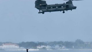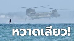ชีนุ๊กบินต่ำใกล้นักเล่นกระดานโต้คลื่น
