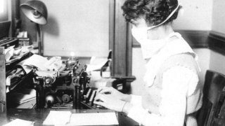 ในช่วงการระบาดของไข้หวัดใหญ่สเปนในปี 2461-2462 พนักงานพิมพ์ดีดต้องสวมหน้ากากและทำงานที่โต๊ะทำงานของเธอ ในเวลานั้น ชาวอเมริกันประมาณหนึ่งในสี่ติดโรค และ 500,000 คนเสียชีวิตจากโรคนี้ ในเดือนมิถุนายน พ.ศ. 2485 ผู้หญิงคนหนึ่งได้รับการฉีดวัคซีนป้องกันไทฟอยด์ บาดทะยัก และไข้ทรพิษ วัคซีนไข้ทรพิษถูกค้นพบโดยแพทย์ชาวอังกฤษเอ็ดเวิร์ดเจนเนอร์ในปี 1890 ในเดือนกุมภาพันธ์ 1949 ผู้ป่วยได้รับการฉีดวัคซีนป้องกันวัณ.. ดูเพิ่ม