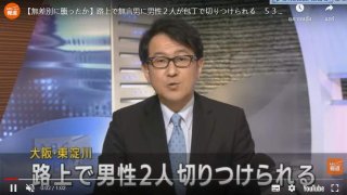 ตำรวจเมืองโอซาก้า ได้จับกุมชายวัย 53 ปี ในข้อหาพยายามฆ่า หลังจากที่เขาใช้มีไล่แทง ชาย 2 คน [โดยสุ่มแทง] ในขณะที่พวกเขากำลังเดินไปบนฟุตบาท... ตำรวจกล่าวว่า "เหตุการณ์เกิดขึ้นเมื่อเวลาประมาณ 15.00 น. ของวันศุกร์ที่ผ่านมา" และ ""ฮิเดคาสึ อุจิ" ได้เดินเข้าไปใกล้ชาย 2 คน [ซึ่งพวกเขาไม่ได้เดินด้วยกัน] แล้วจู่ๆก็ใช้มีดที่พกมาจากบ้าน ไล่แทงพวกเขาทีละคน... แล้วพยานเห็นเหตุการณ์ จึงโทรแจ้งตำรวจ..." ตำรวจกล.. ดูเพิ่ม
