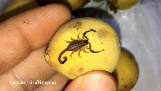 ...ระวัง! แมงป่อง ...เอามาเตือนกันอีกแล้วนะครับ ปีที่แล้วผมพบแมงป่องในพวงลองกอง พอมาวันนี้ก็ยังพบอีก และมีข่าวออกมาเป็นระยะว่ามีคนพบแมงป่องที่อยู่ในพวงลองกอง หนำซ้ำโดนมันต่อยด้วย ...แมงป่อง มีหลายสายพันธุ์ แต่แมงป่องที่ตัวโตสีดำคลานตามพื้นดินกลับมีพิษน้อยกว่าแมงป่องตัวจิ๋วแบบนี้ ...หากโดนแมงป่องต่อย ก็อาจจะแค่เจ็บ หรือปวด ระบม แต่ถ้าหากใครมีอาการแพ้ก็อาจจะมีอาการรุนแรง หากจะบอกว่าอาจถึงตายก็คงจะไม.. ดูเพิ่ม