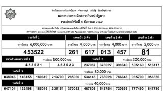 ใบตรวจหวย งวดวันที่ 1 ธันวาคม 2562