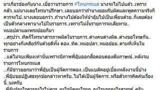 พี่อุ๊บไม่สนับสนุน คนทำผิด หรอกครับ เพราะรู้จักกับแม่นางและน้านางมาเกือบ 40 ปี (ตั้งแต่นางยังไม่เกิด) จึงต้องมาเกี่ยวข้องกับนางเมื่อวานรายการ โหนกระแส นางจะไม่ไปแล้ว เพราะกลัว แม่นางเลยโทรมาปรึกษา เลยบอกว่าถ้านางยอมรับผิดและพูดความจริงก็ควรจะไป..นางเลยบอกว่า..ถ้านางไปต้องให้น้าอุ๊บไปเป็นเพื่อนด้วย ก็เลยต้องเป็นตัวกลางพานางไปในรายการ เพราะไม่งั้นรายการจะเสียหายหมอปลาและพระย้อยก็มาสรุปว่า ทิดก็โทรม.. ดูเพิ่ม