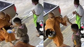 ผู้ใช้TikTok @jessie_cheetah ได้โพสต์คลิปของน้องนักเรียนในชุดลูกเสือใส่บาตรหลวงตาตอนเช้า ด้วยความเอ็นดูหลวงตาจึงเอามือไปลูบหัวพร้อมให้พร แต่น้องลืมตัวทำบางสิ่งตอบกลับไป งานนี้เล่นเอาฮาทั้งโซเชียล https://www.tiktok.com/@jessie_cheetah/video/7135848394794208539 ดูเพิ่ม
